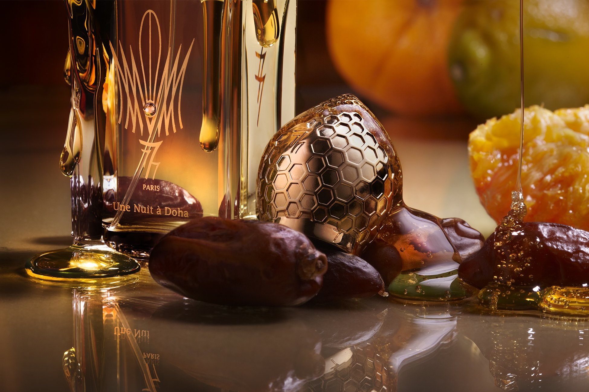 W drugiej części pojawia się akord skoncentrowanego soku z cytrusów. Może nawet likieru. Jest to nuta gęsta, treściwa. Cytrusy w tej formie są wręcz kandyzowane i tylko w niewielkim stopniu przedstawiają kwaskowy charakter. Na tle przypraw wygląda to ciekawie i na pewno zapada w pamięć. W porównaniu do Hajj, nie mamy tutaj mrocznej paczuli, nie mamy ciemnego lasu. Une Nuit A Doha gra w słoneczne karty, ciepłe i bardziej rozkoszne. Trochę tak, jakby scenę zrobić z desek drewna sandałowego.