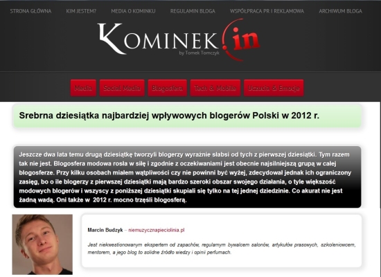 styczeń 2013 – Marcin Budzyk wśród Najbardziej Wpływowych Blogerów 2012 roku